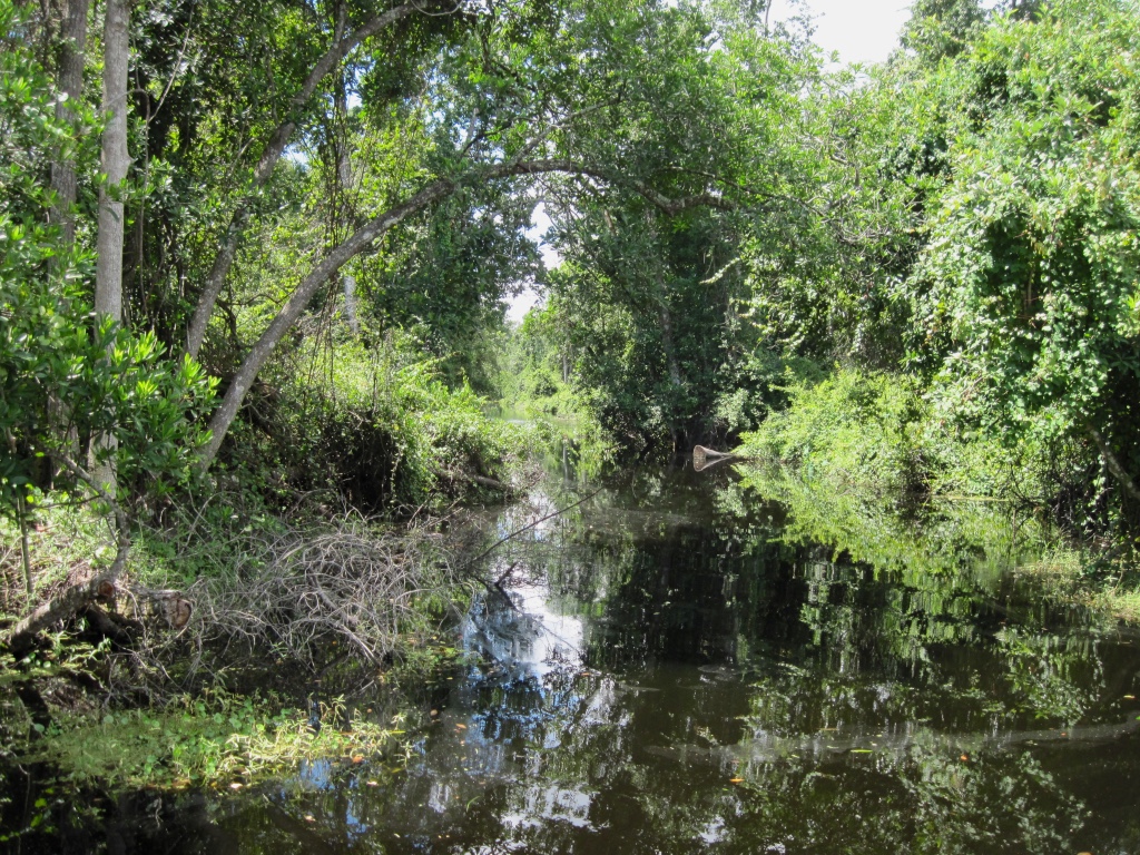 We paid for the boat last Thursday but didn't receive delivery until yesterday afternoon. Then we had to get the title transferred and pay for insurance, so we didn't get to take it out yesterday. But today we unhitched from our dock and headed down the canal to Griffin Lake. Our canal is smaller than the ones we traveled last Thursday, with more growth. We had to go carefully through this section.