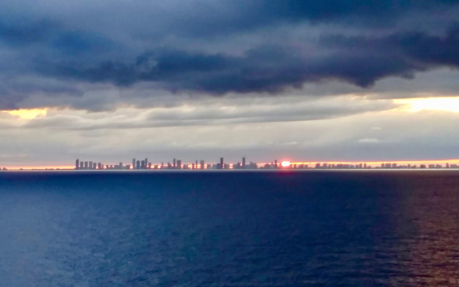 I finally quit laughing, we all settled in and headed up onto the deck, where we watched the sun set behind the shoreline. We are on our way to Cuba!
